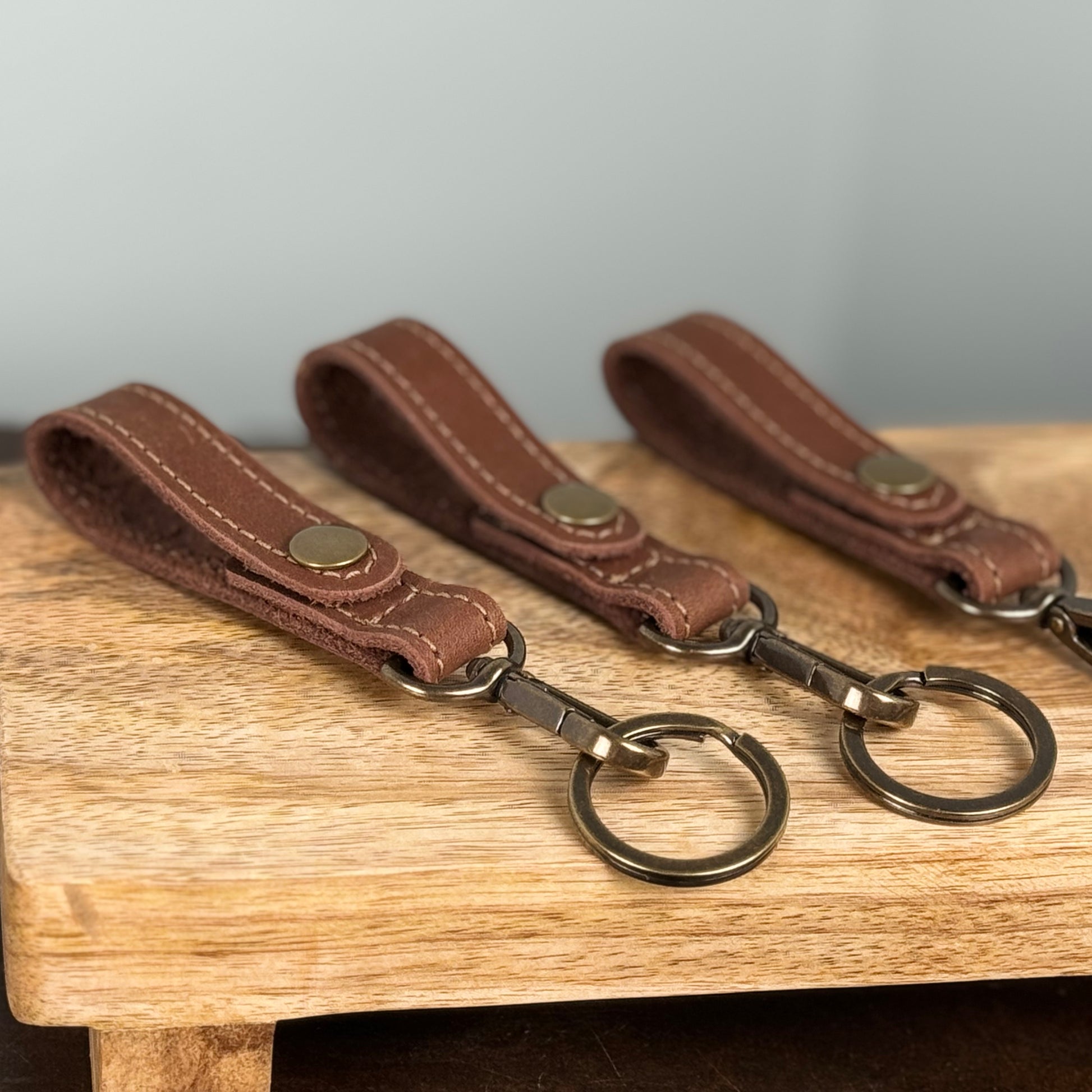 - Full grain leather key fob